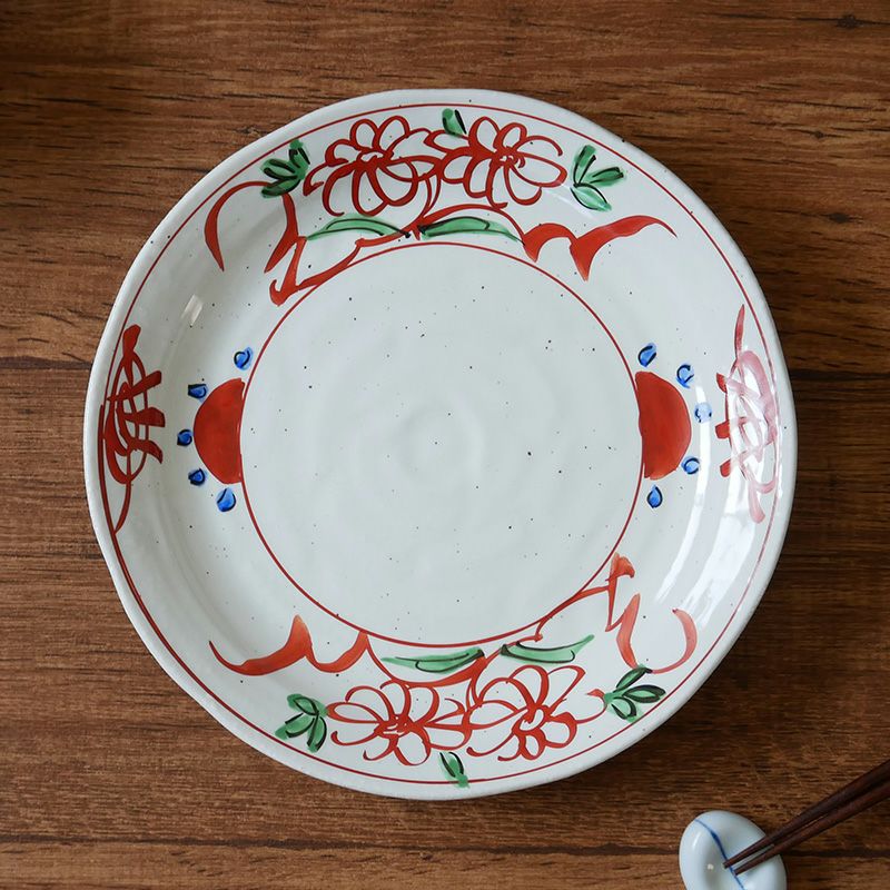 手描きの絵柄が施されたあたたかみのある大皿。 約24cmの大皿サイズでメインディッシュ用の主菜皿、パスタ皿、ディナープレート、盛り皿などにおすすめです。 適度な深さがあるのでカレーや少し汁気のあるおかずの盛り付けにもピッタリ。 テーブルをグッと引き締め、どんなお料理も引き立ててくれます。