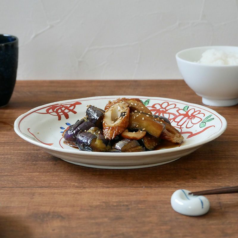 主菜皿 24cm 粉引 手描き赤絵 和食器