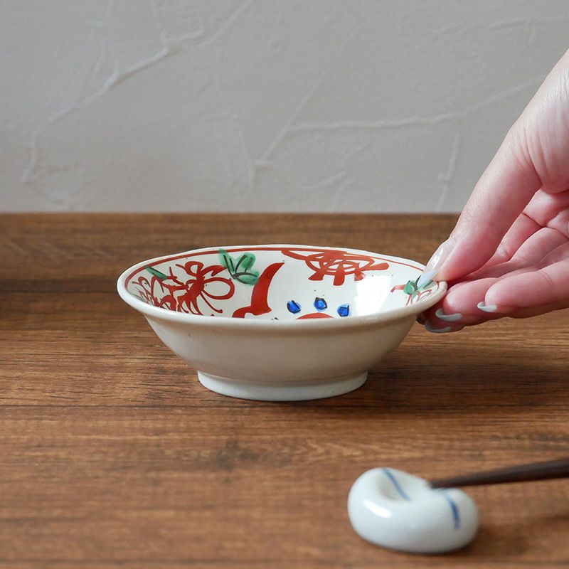 手描きの絵柄が施されたあたたかみのある小鉢。 約11cmの小鉢は副菜鉢、デザートボウル、サラダボウル、取り鉢など多用途にお使いいただけるサイズです。 普段使いはもちろん、おもてなしにもオススメ。 テーブルをグッと引き締め、どんなお料理も引き立ててくれます。