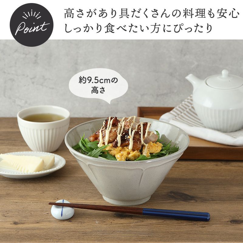 花型のデザインが上品な雰囲気を演出してくれるKARINシリーズ。 普段の料理でもワンランク格上げしてくれるような器です。 こちらは深さのある台形どんぶりで、ラーメンやうどんの麺類、丼ぶりものに最適。 ほかにも大鉢や盛り鉢としても使えたり、具だくさんの料理にぴったりな丼ぶりです。