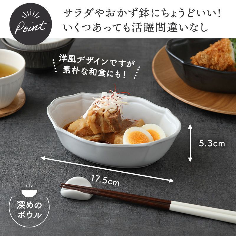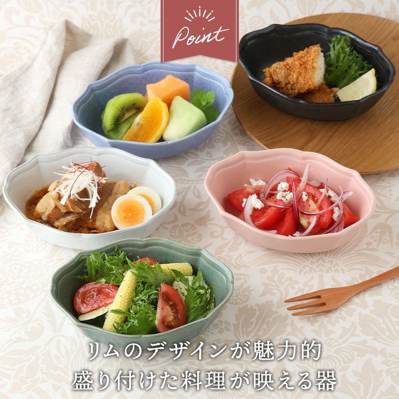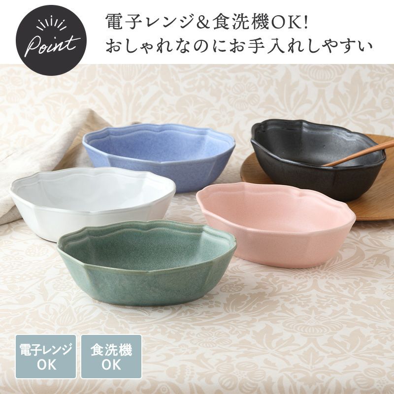 リム部分がデザインされた楕円型のボウルです。 おしゃれな形状とカラーはテーブルを洗練された印象にまとめ、盛りつけた料理を引き立てカフェ風に演出してくれます。 それぞれのカラーは均一な色ではなく、 あえてムラを出したことにより 一つずつ表情が異なる良さを愉しんでいただく器です。 こちらはサラダボウルやデザートボウル、おかず鉢としてはもちろん、しっかり深さがあるのでスープやシチューのボウルとしてもお使いいただけます。