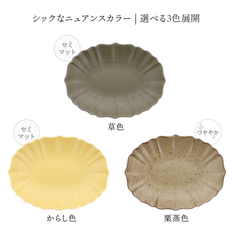 和食や洋食、アジアン料理にも自然と馴染み、センスよく見せてくれるおしゃれな洋食器です。 約18cmの中皿はデザート皿やパン皿、おかずの取り皿としてもおすすめ。 ランダムなフリルがおしゃれで普段使いはもちろん、おもてなしにもぴったり。 色違いで揃えると統一感が出て雰囲気UP間違いなしです。