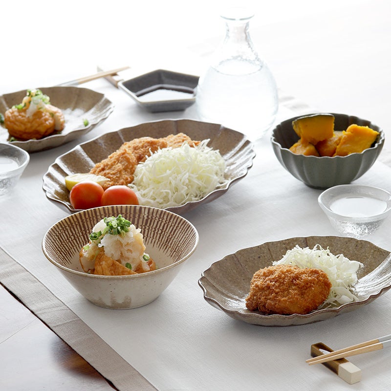 ニュアンスカラーが美しい蓮モチーフの楕円皿