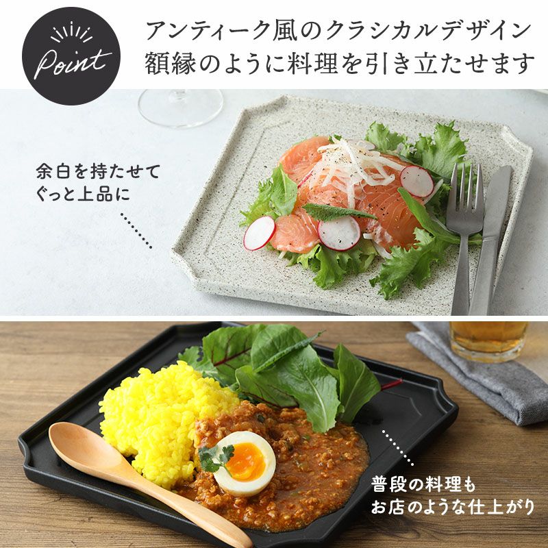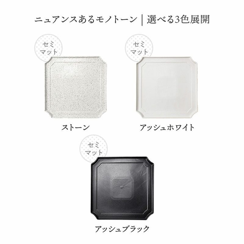 シンプルなデザインの中に洗練された隅切りのフォルムが特徴のオペラシリーズ。 カラーは白、黒、ストーン柄の3種類で、どれも和食・洋食問わず使える落ち着いたトーンが魅力です。 メインディッシュ・ワンプレートごはん・デザートプレートなどにぴったりなサイズ感。 おもてなしや普段使いのテーブルでも上品なアクセントを添えてくれます。