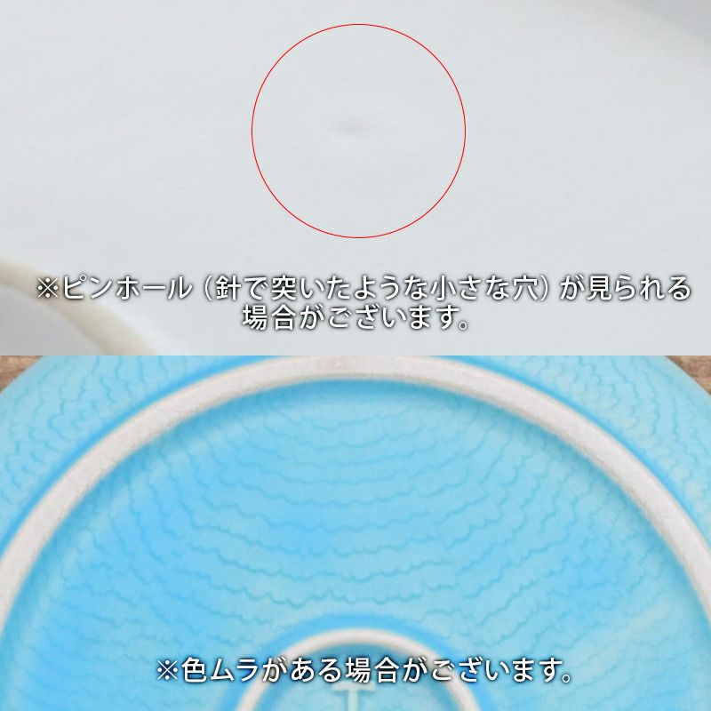 | 注意事項 | ※色ムラがある場合がございます。 ※ピンホール(針で突いたような小さな穴)が見られる場合がございます。 ※トルコ釉は食材の油分が染み込みやすい釉薬です。使い始めは染みになりやすいため予めご了承ください。使い込んでいくうちに全体に馴染んでいきます。 |