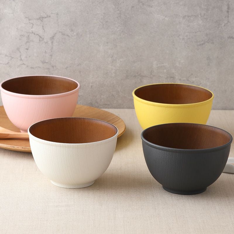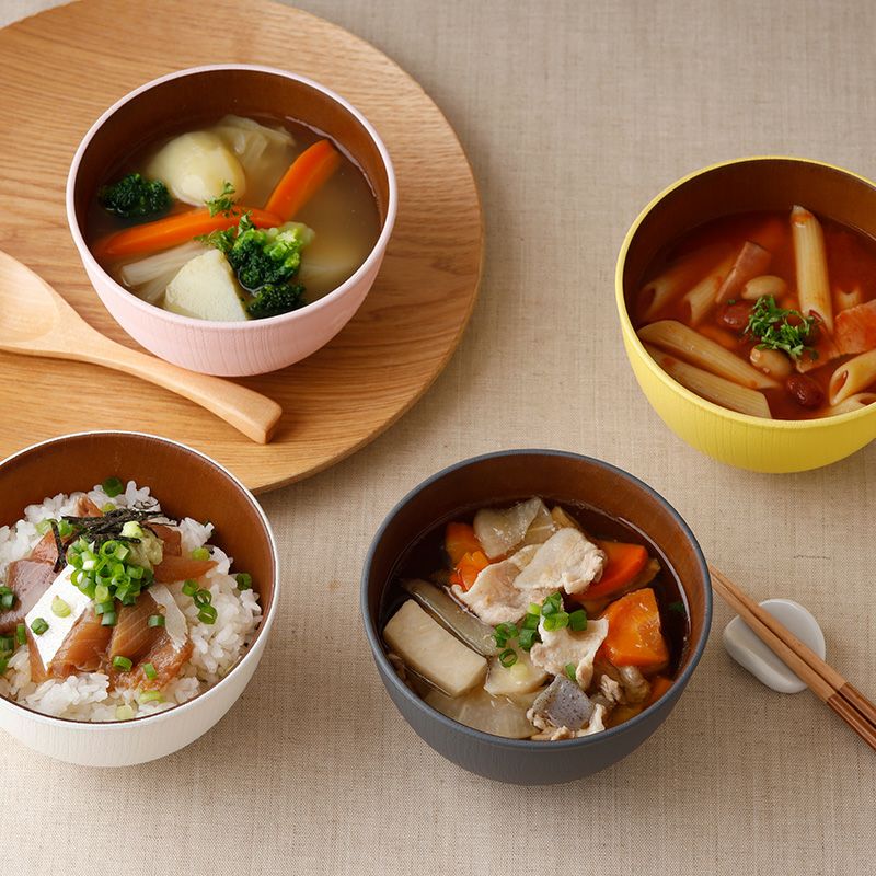 木目調のカラフルなスープボウル。 樹脂製ながら木製の雰囲気で、食卓をナチュラルに演出してくれます。 小鉢サイズで副菜鉢、ヨーグルトボウル、サラダボウル、フルーツボウル、小さめの取り鉢などにぴったり。 普段使いだけでなく子供用食器として、またピクニックやキャンプなどのアウトドア食器としても最適です。