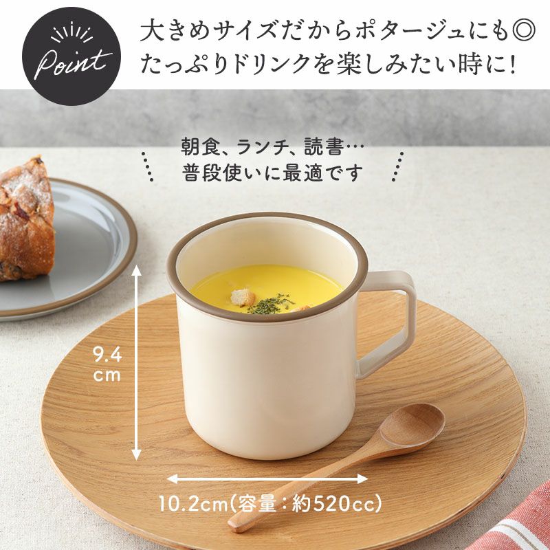 ナチュラルな雰囲気にもしっくり馴染む便利なマグカップ。 電子レンジ・食洗機対応なので見た目も機能性もばっちりです。 大きめなサイズで、ゆっくり過ごしたい時のコーヒーカップ、ミルクをたっぷり入れるカフェオレカップに最適。デザートカップやスープカップとしてもおすすめです。 同シリーズの食器と組み合わせて、統一感のあるおしゃれなテーブルコーディネートも楽しめますよ。