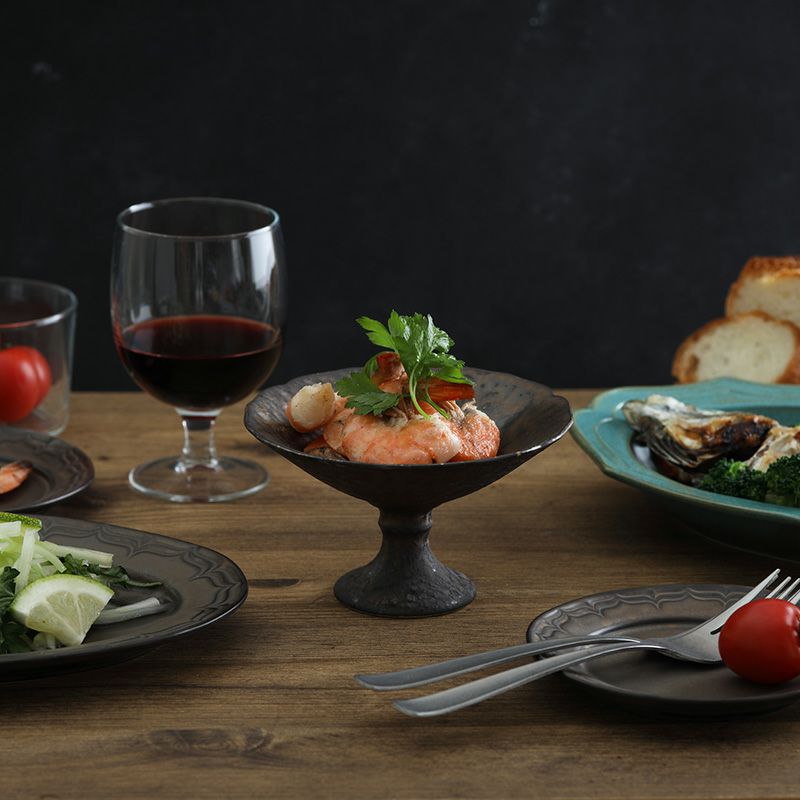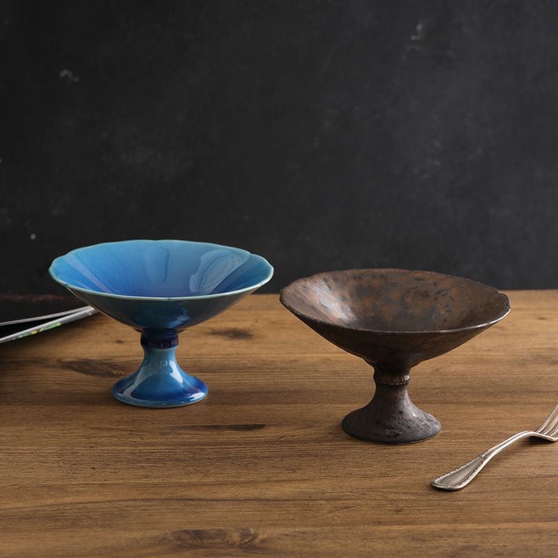 いつものテーブルにアンティークな雰囲気をプラスしてくれる脚付きの器。 鮮やかなブルーと深みのあるゴールドで食卓をワンランクアップしてくれますよ。 小鉢サイズで前菜鉢、フルーツボウル、デザートボウルなどに最適。 インテリアとしても使えるおしゃれな洋食器です。