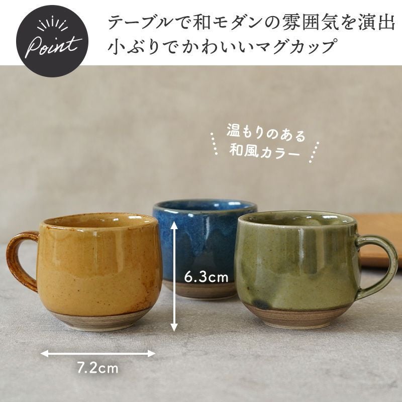 和風カラーがほっこり癒されるおしゃれなマグカップです。 和菓子や和食のテーブルで和モダンの雰囲気を演出。 180ccと小ぶりなマグは朝食、食後、ティータイムにぴったりなサイズ感です。 カップ以外にもデザートカップとしてもおすすめ。