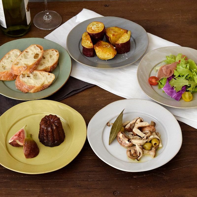シックなアースカラーの20cmプレートです。 マットな質感はテーブルを洗練された印象にまとめ、 サラダやデザートなど、盛り付けたお料理を引き立てます。 均一な色・形ではなく、あえて歪みやムラを出したことにより一つずつ表情が異なる良さを愉しんでいただく器です。 こちらのお皿は約20cmサイズで、ケーキやスコーンなどデザート皿に最適なサイズ。 他にもサラダ皿や取り皿、パン皿など日常活躍するサイズです。