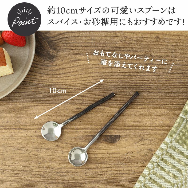 約10cmのスタイリッシュなステンレス製のミニスプーン。 コーヒーや紅茶用のスプーンとして丁度よいサイズ。 他にもプリンやゼリー、ムースなどデザート用にもおすすめ。 普段使いからおもてなしまで大活躍間違いなしです。