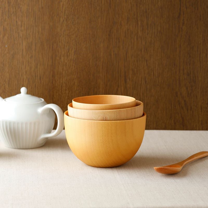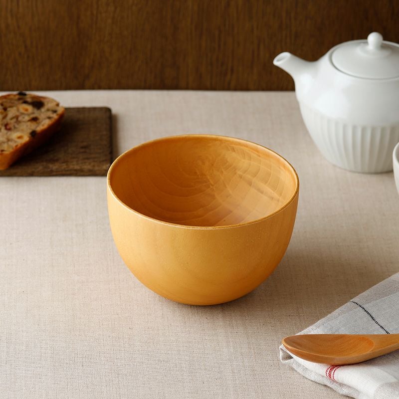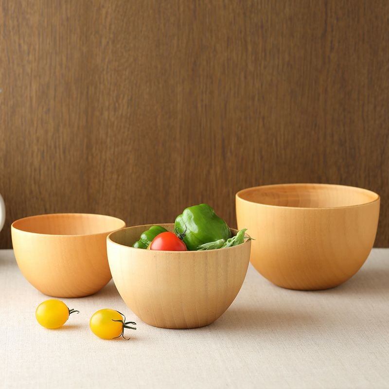 ナチュラル素材を使用した、シンプルな木製スープボウル。 シンプルなデザインですので、煮物などおかずの盛り付け、サラダボウル、シリアルボウル、ヨーグルトボウルなど、和洋問わず幅広くお使いいただけます。 スープ、みそ汁などの汁椀、シチューの取り分けなど取り鉢にもぴったり。 優しい素材ですので、大人用に限らず、子供用・キッズ食器としてもオススメ。