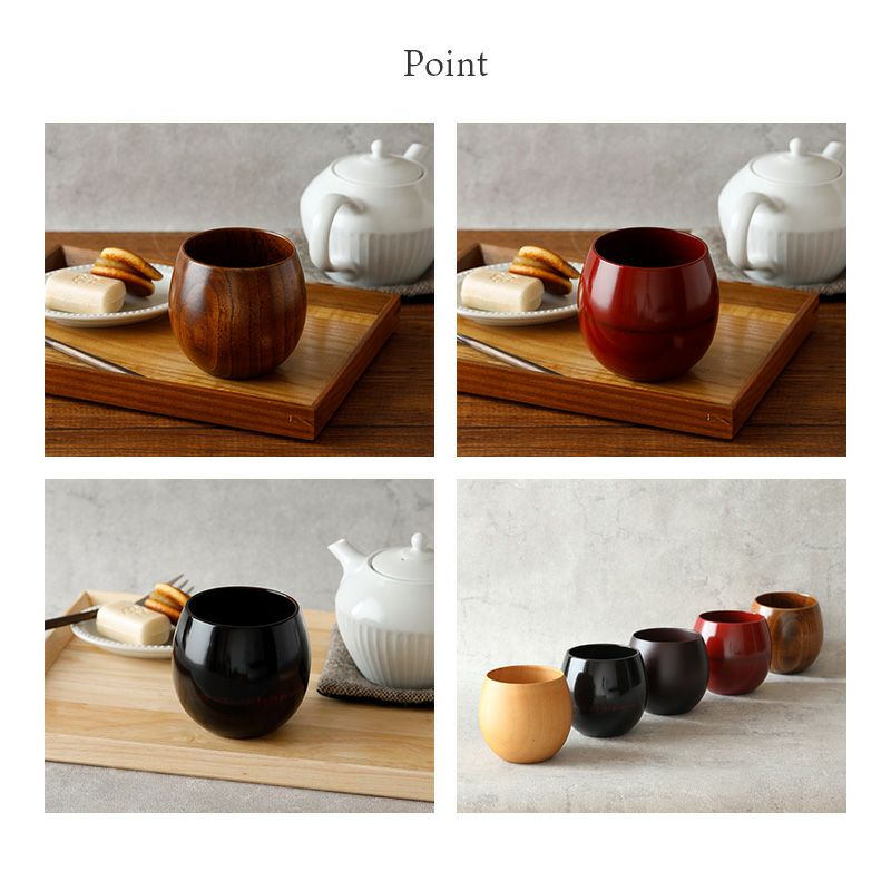 木の温もりを感じるナチュラルなカップ。 おしゃれなカラーが食卓を優しく彩ってくれます。 手にすっぽりと収まる小さめのカップで、お茶やコーヒーだけでなく、ビールや焼酎などお酒を呑む酒器としてもお使いいただけます。 他にも小鉢、デザートカップなど幅広い用途に使えるフリーカップです。