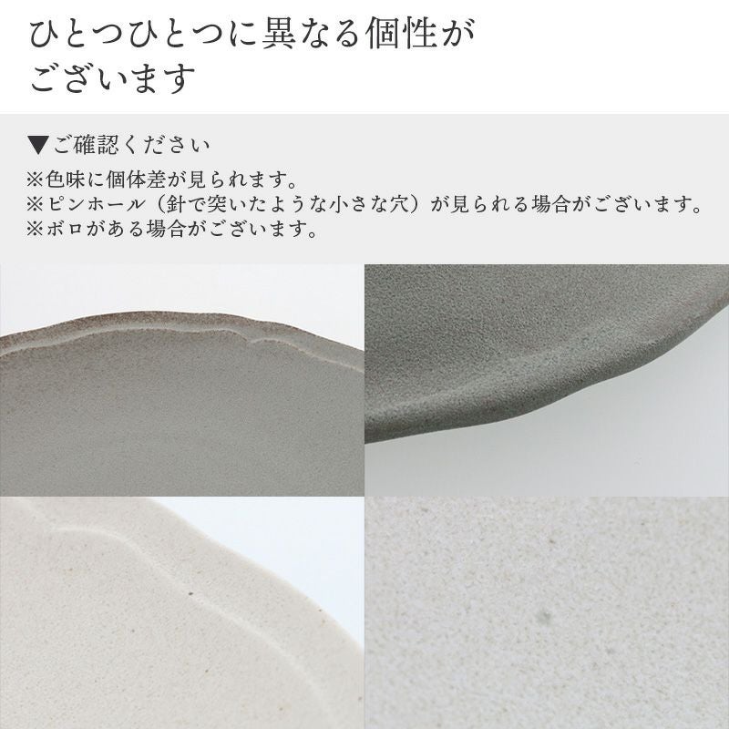 | 注意事項 | ※サイズは全て外寸になります。 ※サイズ・重さなどは商品により誤差があります。 ご注意 ※アイボリー・グレーはザラつきがある質感です。 ※色味に個体差が見られます。 ※ピンホール(針で突いたような小さな穴)が見られる場合がございます。 ※ボロがある場合がございます。 ※釉薬の垂れや溜まりやムラが見られる場合がございます。 ※ブラックの商品は釉薬の艶が強く表れる場合がございます。 ※お客様のお使いのモニター設定、お部屋の照明等により実際の商品と色味が異なって見える場合がございます。 ※画像に含まれる小物は使用イメージのために使用しています。 ※不明な点がございましたら、お気軽にお問い合わせ下さい。 |