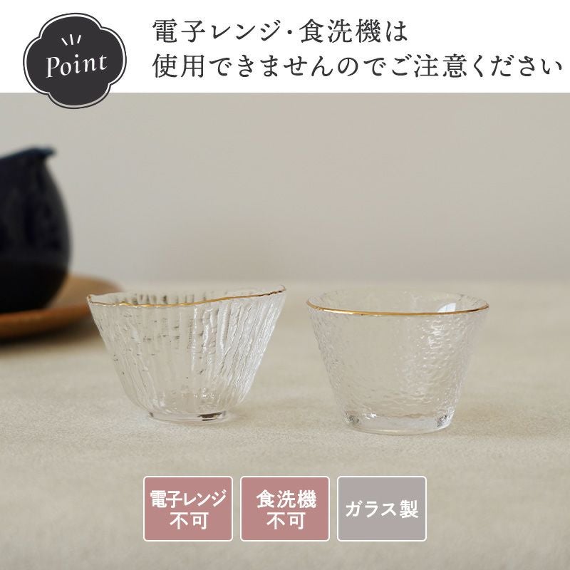 上品な金縁が美しいガラス製の小さな鉢。 コンパクトなサイズで珍味以外にも前菜、おつまみ、ミニデザートを盛りつけるのに最適です。 透明なガラスに施された繊細な模様が、食材を一層引き立ててくれるので、おもてなしの席や普段使いに上品なアクセントを添えてくれます。