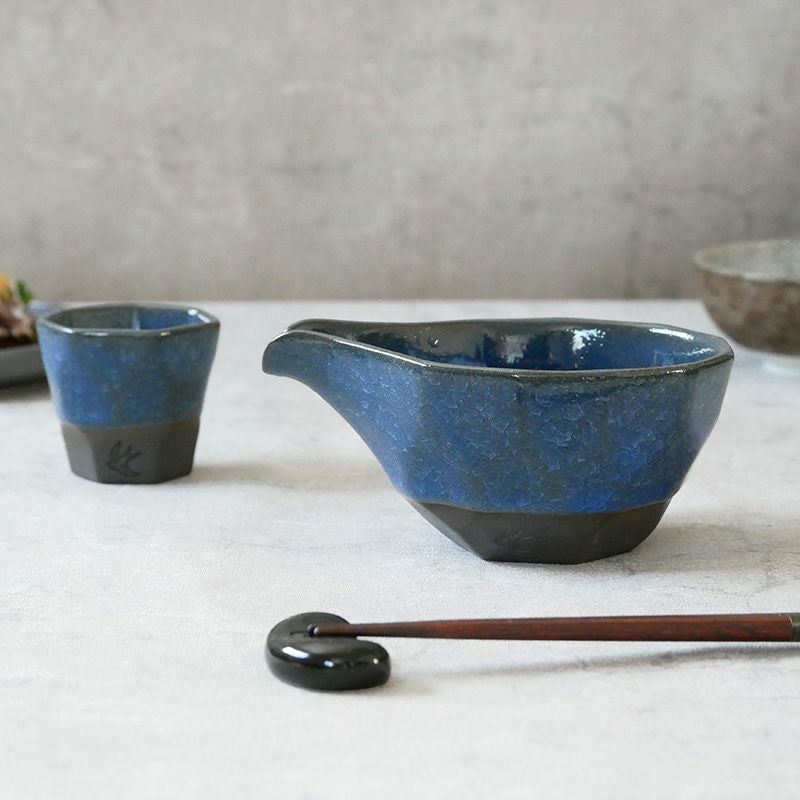 複雑に入った深みのある釉調、美しい氷裂の貫入が魅力の酒器