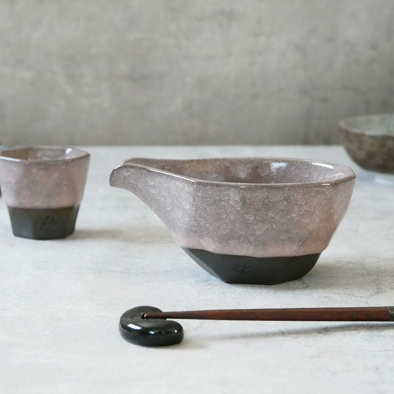 冷酒も熱燗もOK。日本酒の香りをダイレクトに楽しめる片口酒器。 電子レンジ対応なので、簡単に燗をつけることもできます。 氷の結晶のような、美しい氷裂の貫入が魅力の雰囲気のある器。 徳利と違い開口部が広いため、洗いやすいのもうれしいポイントです。
