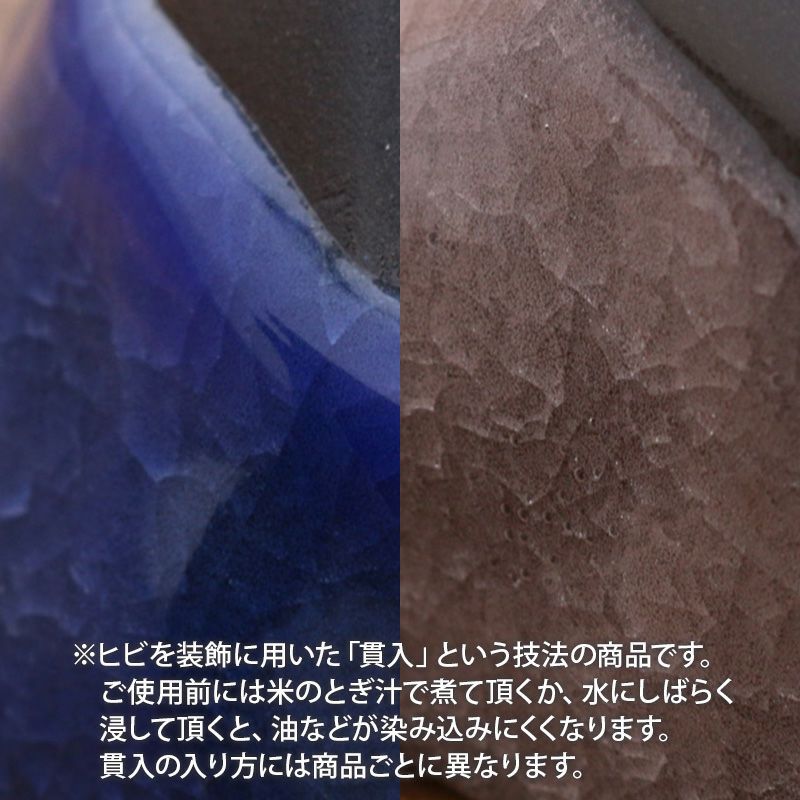 | 注意事項 | ※サイズは全て外寸になります。 ご注意 ※色むら・ピンホール(針で突いたような小さな穴)・釉薬の垂れや溜まりが見られる場合がございます。 ※ヒビを装飾に用いた「貫入」という技法の商品です。ご使用前には米のとぎ汁で煮て頂くか、水にしばらく浸して頂くと、油などが染み込みにくくなります。貫入の入り方には商品ごとに異なります。 ※お客様のお使いのモニター設定、お部屋の照明等により実際の商品と色味が異なって見える場合がございます。 ※画像に含まれる小物は使用イメージのために使用しています。 |