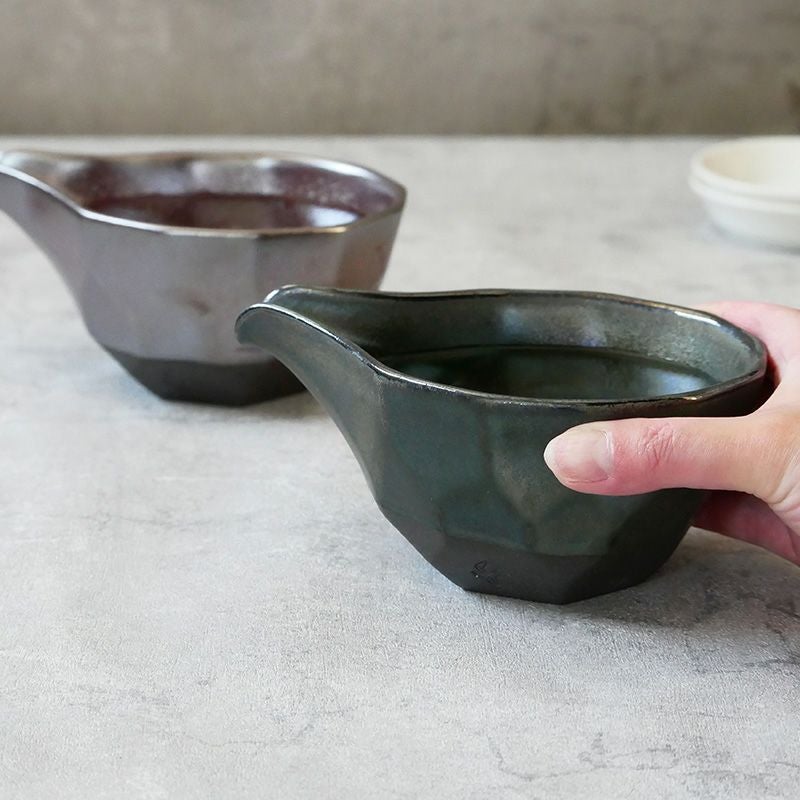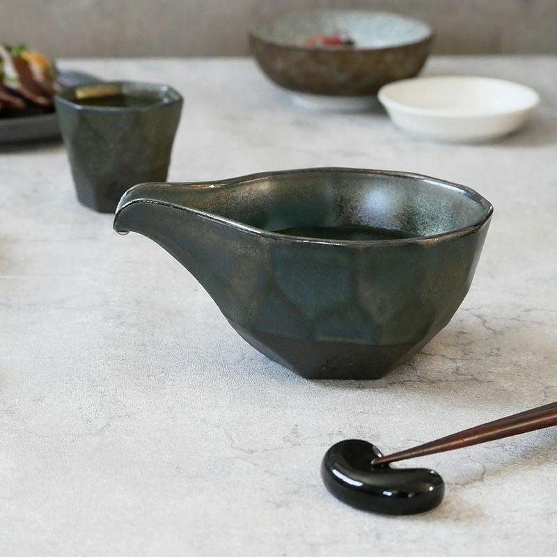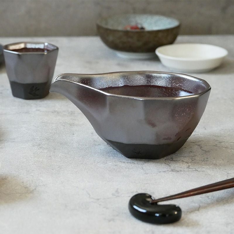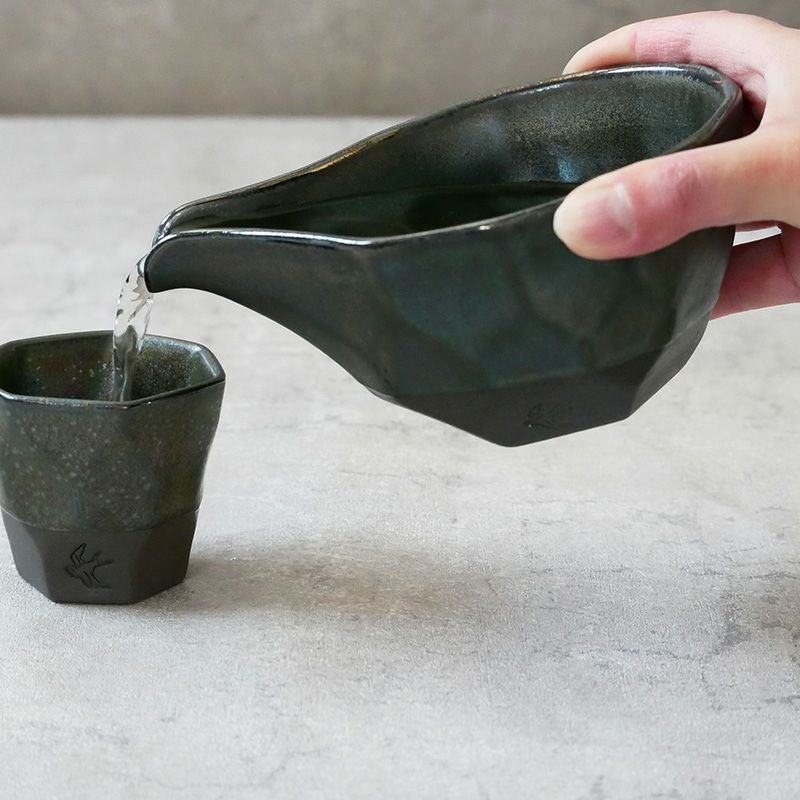 宝石を思わせるメタリックな釉薬が施された美しい酒器