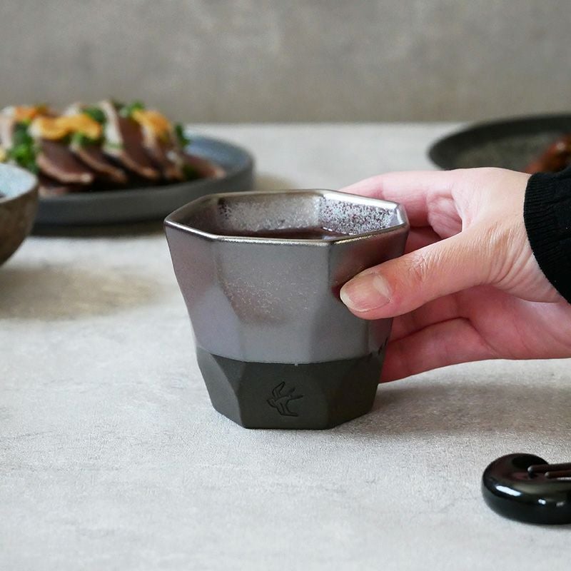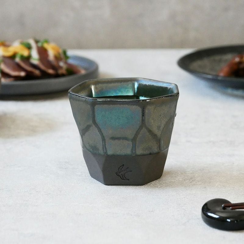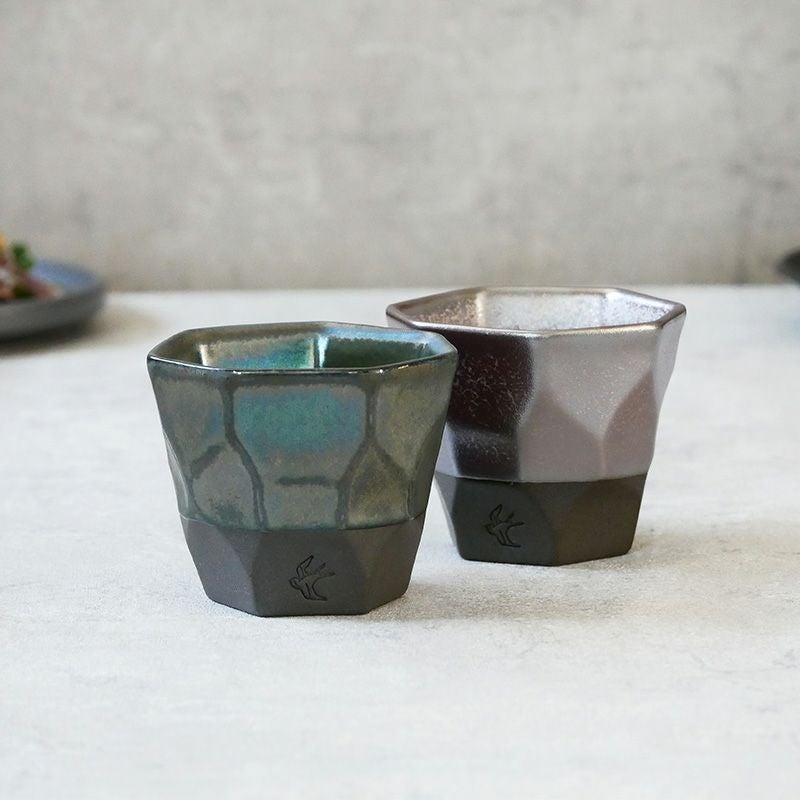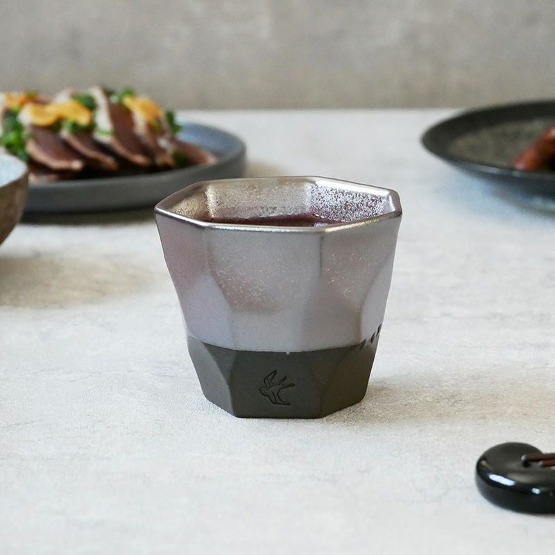 宝石を思わせるメタリックな釉薬が施された美しい酒器