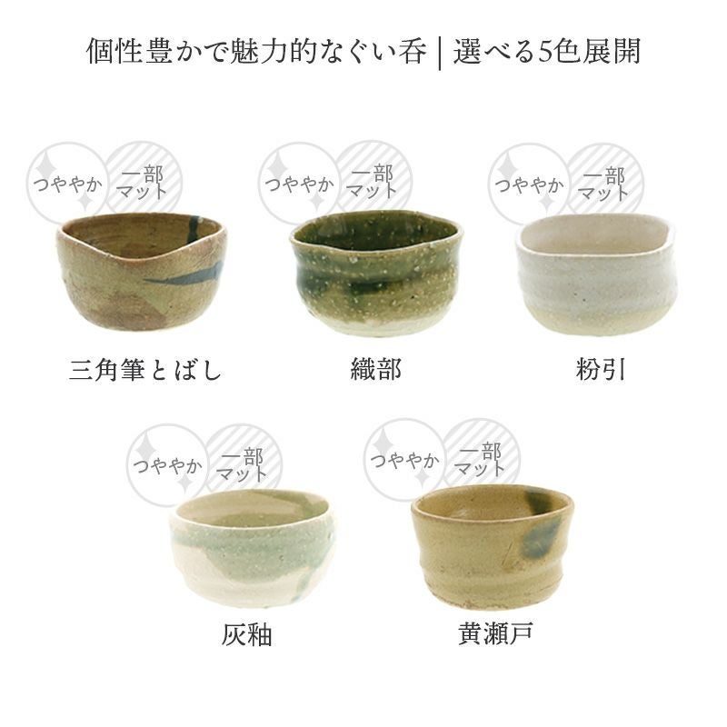 職人の手仕事が生み出す、温もりあるぐい呑み。 ロクロと職人の手のみで作られているため、それぞれに異なる風合いや表情があり、手仕事ならではの温かみを感じられます。 日本酒はもちろん、珍味や薬味入れとしても活躍、アイスクリームやプリンなどを盛り付ければ、和風スイーツカップにも早変わり。 お気に入りの一色を選ぶもよし、色違いで揃えて楽しむのもおすすめです。