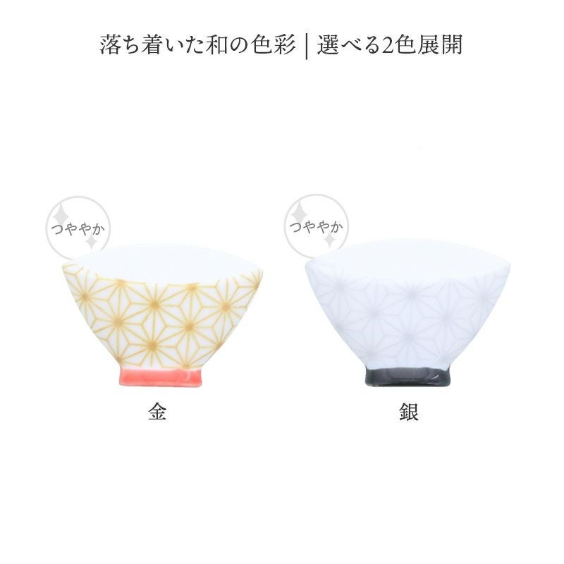 麻の葉模様が美しい箸置きで、食卓を上品に彩ります。 シンプルなデザインで軽やかな印象を与え、どんな食器とも相性抜群。 普段使いはもちろん、来客用としていくつか用意しておくのもおすすめ。 金と銀の2色展開で、和のテイストを大切にしつつ、モダンな食卓コーディネートにもぴったりです。