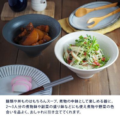 シンプルでシャープな形状のモダンな丼ぶり。 麺類・丼ものにはもちろん、洋風やアジアン料理にもしっくり馴染みます。 ほかにも煮物やサラダの盛り鉢としてもお使いいただける大きさ・デザインなので様々なシーンで活躍できますよ。 カラーはグレーとベージュの2色。グレーはシックに、ベージュはナチュラルな印象のテーブルを演出してくれます。 2色合わせて使うことでモノトーンのテーブルコーディネートを楽しむことができますよ。