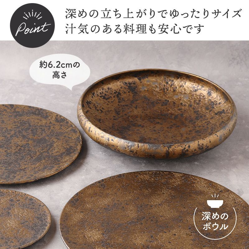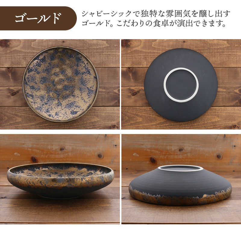 | 注意事項 | ※サイズは全て外寸になります。 ※釉薬のムラがある場合がございます。 ※ゴールドの色味に個体差がございます。複数枚ご購入いただいた場合、色味が異なる場合がございますのでご了承ください。 ※お客様のお使いのモニター設定、お部屋の照明等により実際の商品と色味が異なって見える場合がございます。 ※画像に含まれる小物は使用イメージのために使用しています。 ※不明な点がございましたら、お気軽にお問い合わせ下さい。 |