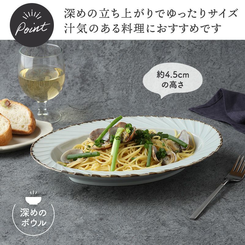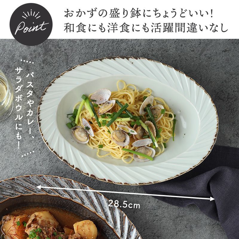 盛り付けたお料理をいつもよりワンランクアップさせる、オシャレなオーバルボウル。 こちらは、おかずの盛り鉢やサラダボウルの他、パスタボウルやカレーボウルとしてもお使いいただけます。 また、オーブン調理に対応しているため、グラタンやラザニア用のオーブンウェアとしても使用できます。 家族での食卓に用いたり、おもてなし・パーティーシーンでも大活躍する便利なサイズのボウルですよ。
