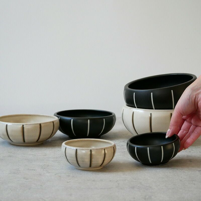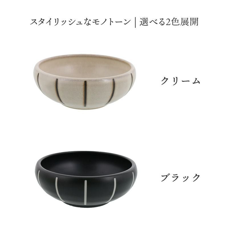 どんな料理にもぴったりとマッチするモノトーンのボウルです。 13cmのボウルはサラダボウルや、おかずの盛り鉢、煮物鉢、デザートボウル、ヨーグルトボウルなど、多用途にご使用いただけます。 落ち着いた色合いですが、側面に施されたさりげない十草模様が食卓のアクセントに。 お持ちの食器とも合わせやすく、重宝すること間違いなしのボウルです。