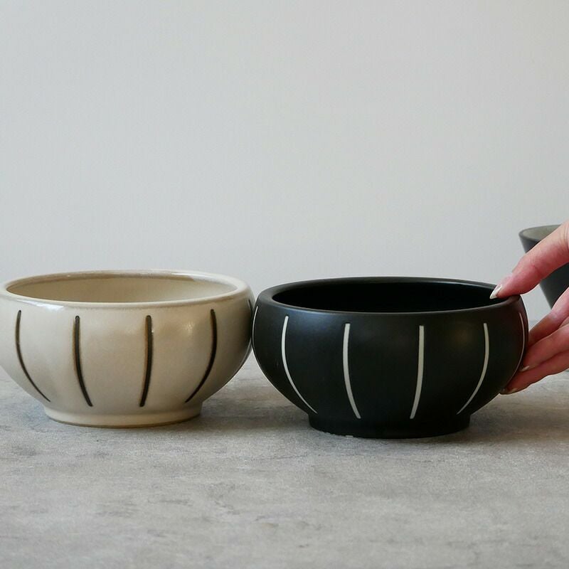 うつわの内側が丸まっており、スープやご飯がすくいやすい丼ぶりです。 サラダボウルや、おかずの盛り鉢、煮物鉢、スープボウル、デザートボウルなどにお使いいただけます。 小ぶりな丼ぶりなのでお子様用のラーメン丼ぶりなどのお子様食器としてや、小さめの麺鉢をお探しの方にもおすすめ。 モノトーンカラーでお手持ちの食器とも合わせやすく重宝できそうですね。