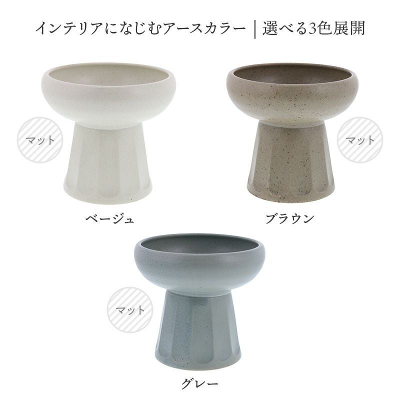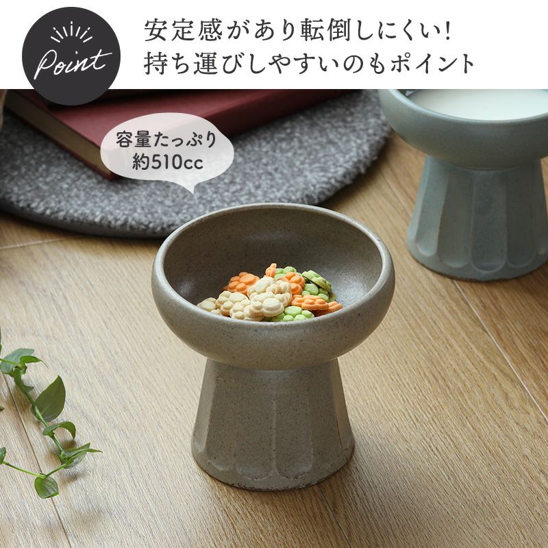 インテリアになじむ、アースカラーのペット用食器です。 台座が付いたデザインで犬や猫にも食べやすい高さ。 また、安定感があり転倒しにくい形状となっています。 持ち運びしやすいのも飼い主さんにうれしいポイント。