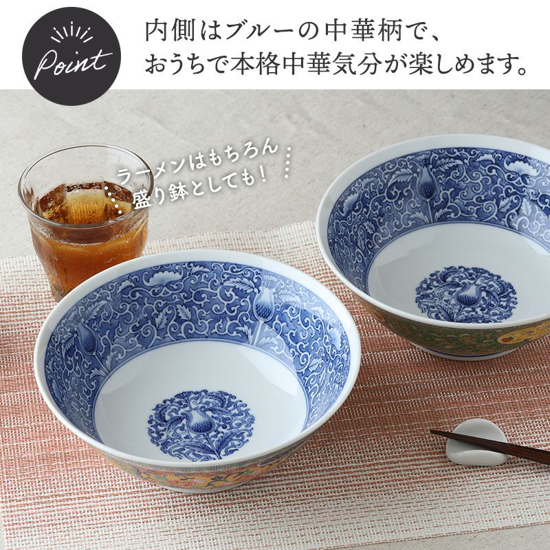 家で存分に中華気分を味わえるラーメン丼ぶりです。 こちらは深さのあるどんぶりなので、スープや具材などもたっぷり入れて盛り付けが出来ます。 ほかにも大鉢や盛り鉢としても使えたり、具だくさんの料理、しっかり食べたい方にぴったり。 柄違いで揃えてペアでお使いいただくことも出来ますよ。普段使いからおもてなし食器としてもお使いいただけます。