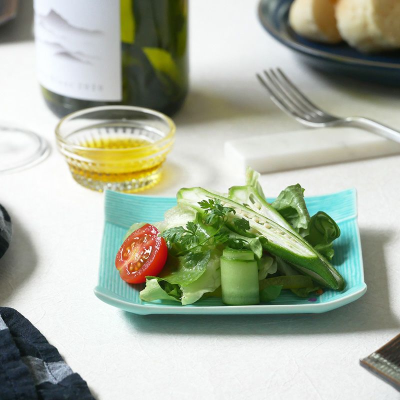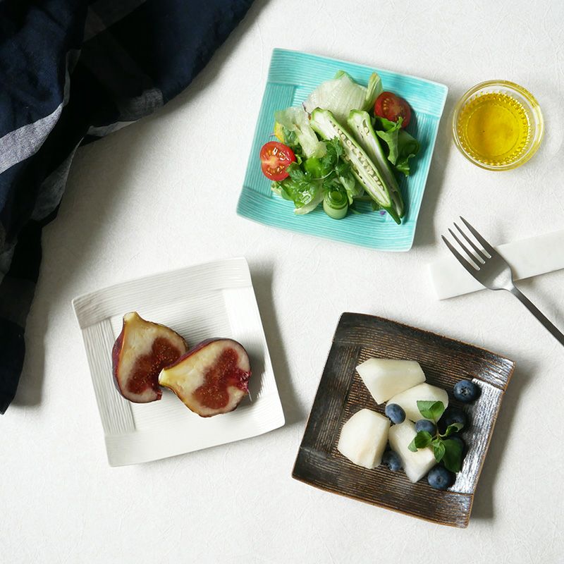 角小皿はほどよい大きさで使い勝手がよく、副菜皿、デザート皿、取り皿など幅広い用途にお使いいただけます。