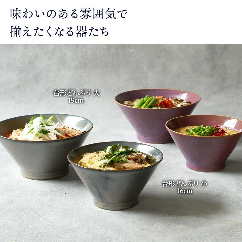 シックなカラーとモダンなデザインで、和食以外にも洋食・アジアン料理にもしっくり馴染んでくれる丼。 こちらは深さのある台形どんぶりで、ラーメンやうどんの麺類、丼ぶりものに最適。 ほかにも煮物やサラダの盛り鉢としてもお使いいただける大きさなので様々なシーンで活躍できますよ。 上品で使いやすい和食器なので、普段使いにはもちろん、おもてなし食器として取り入れてみてはいかがでしょうか。