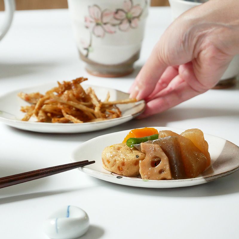 手描きの絵が温かく、和食・洋食どちらにもしっくり馴染んでくれるお皿。 優しい色合いでお手持ちの和食器とも合わせやすいデザインです。 中皿サイズで取り皿はもちろん、前菜皿や副菜皿に活躍します。 普段使いからおもてなし食器としてもお使いいただけます。