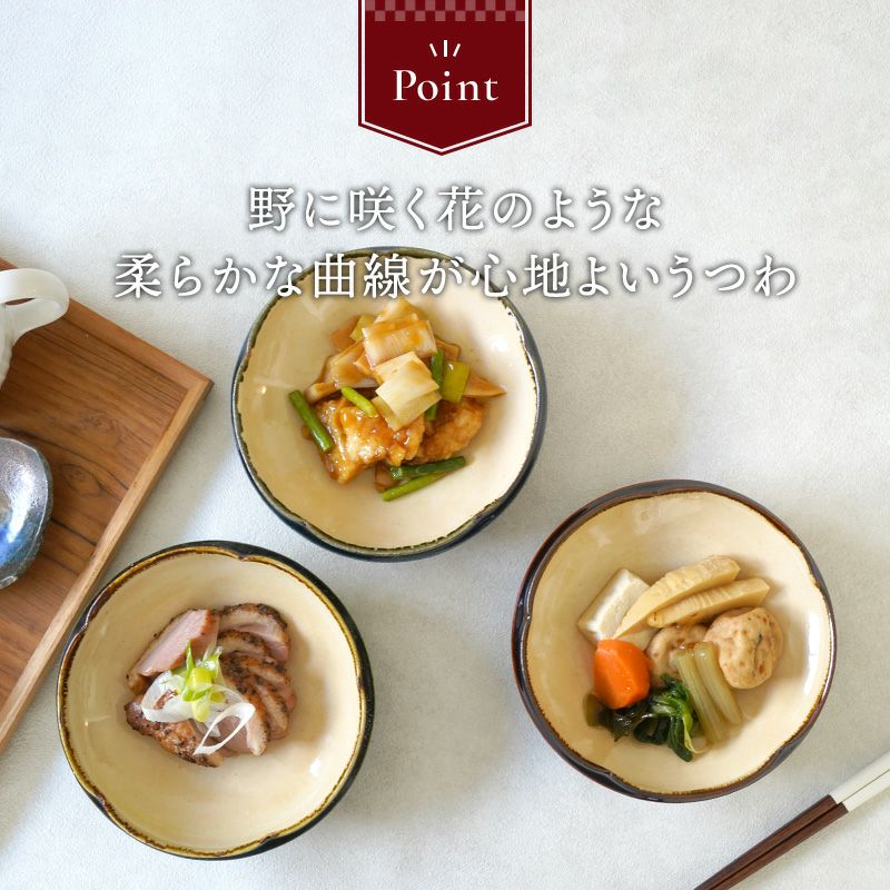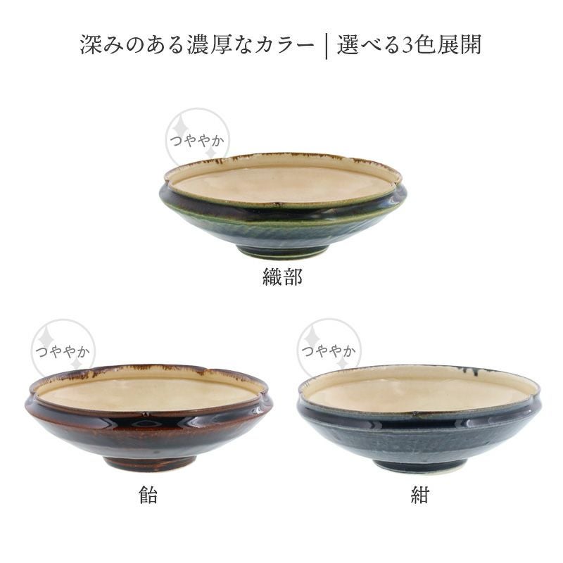 深みのある濃厚なカラーが落ち着きのある食卓を演出してくれます。 中鉢はサラダボウルや、おかずの盛り鉢・煮物鉢にオススメ。 その他シチューボウルや、シリアルボウルなどにも使えます。揃えておくと、朝昼晩どんなシーンでも活躍しますよ。 同じ色で揃えても、多色で揃えても統一感のある上品な器です。