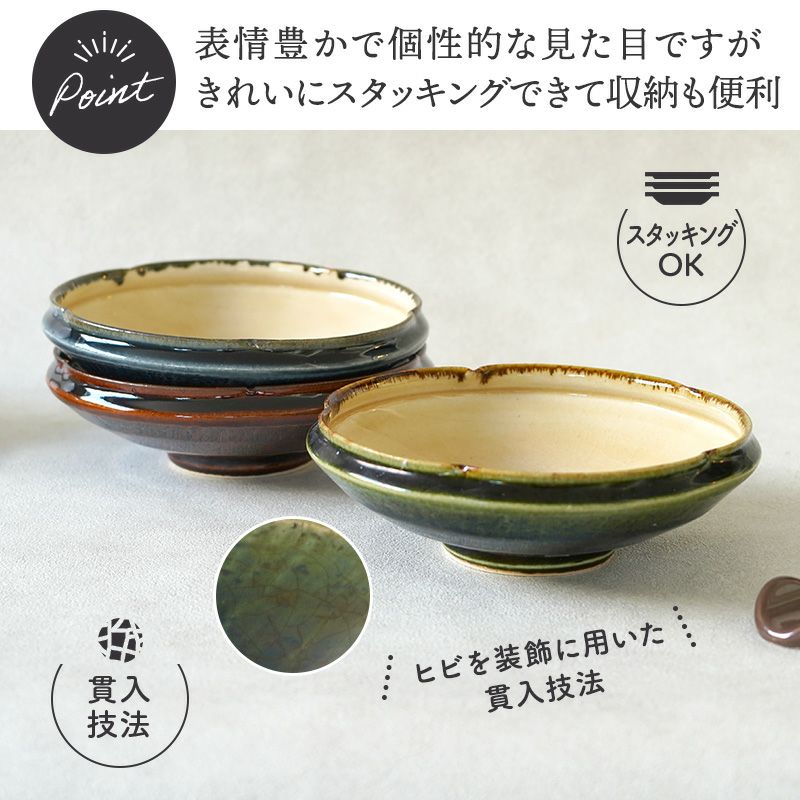 | 注意事項 | ※サイズは全て外寸になります。サイズ・重さなどは商品により誤差があります。 ※鉄粉や小さな穴、小さな突起が見られる場合がございます。 ※釉薬の垂れや溜まりやムラや剥げの他、土の特性により凹凸、しわが見られる場合がございます。 ※ヒビを装飾に用いた「貫入」が表面に入っております。焼成で質感・色味に個体差が見られる場合がございます。 ※色抜け・筋が見られる場合がございます。 ※様々な症状は手造りにみられる「味」としてお楽しみ頂ければと思いますのでご了承下さい。 ※お客様のお使いのモニター設定、お部屋の照明等により実際の商品と色味が異なって見える場合がございます。 ※画像に含まれる小物は使用イメージのために使用しています。 ※不明な点がございましたら、お気軽にお問い合わせ下さい。 |