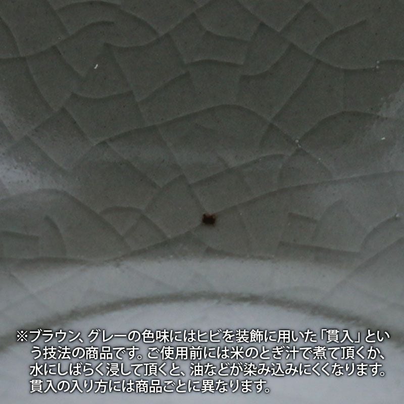 | 注意事項 | ※サイズは全て外寸になります。 ご注意 ※釉薬の垂れやムラ・内側中央に釉薬の溜まりが見られる場合がございます。 ※ブラウン、グレーの色味にはヒビを装飾に用いた「貫入」という技法の商品です。ご使用前には米のとぎ汁で煮て頂くか、水にしばらく浸して頂くと、油などが染み込みにくくなります。貫入の入り方には商品ごとに異なります。 ※ウルシ色の商品は傷が付きやすい商品の為、製造時に傷がついてしまう場合がございます。 ※お客様のお使いのモニター設定、照明等により実際の商品と色味が異なって見える場合がございます。 ※画像の小物は使用イメージのために使用しています。 |