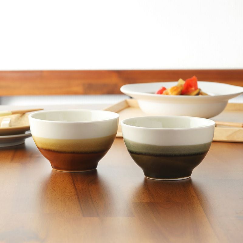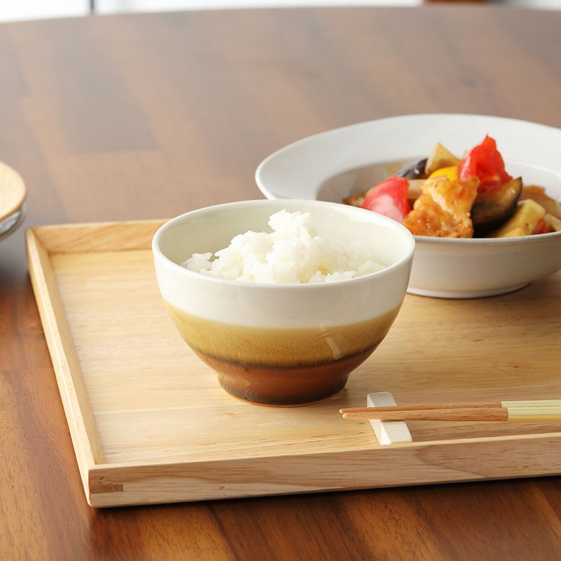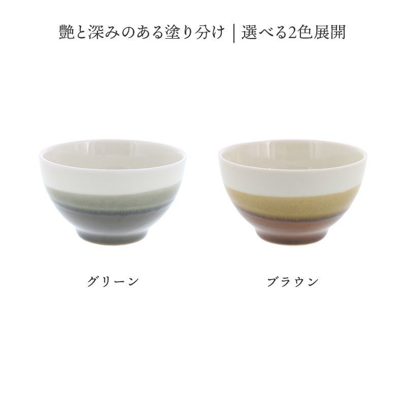 シックな和カラーが味わい深いお茶碗。 深みのあるカラーに爽やかなホワイトの塗り分けがアクセントになっています。 モダンなデザインで和食器・洋食器どちらにも合わせやすく、おしゃれな和カフェ風コーディネートにぴったり。 普段使いはもちろん、おもてなし食器としてもおすすめです。