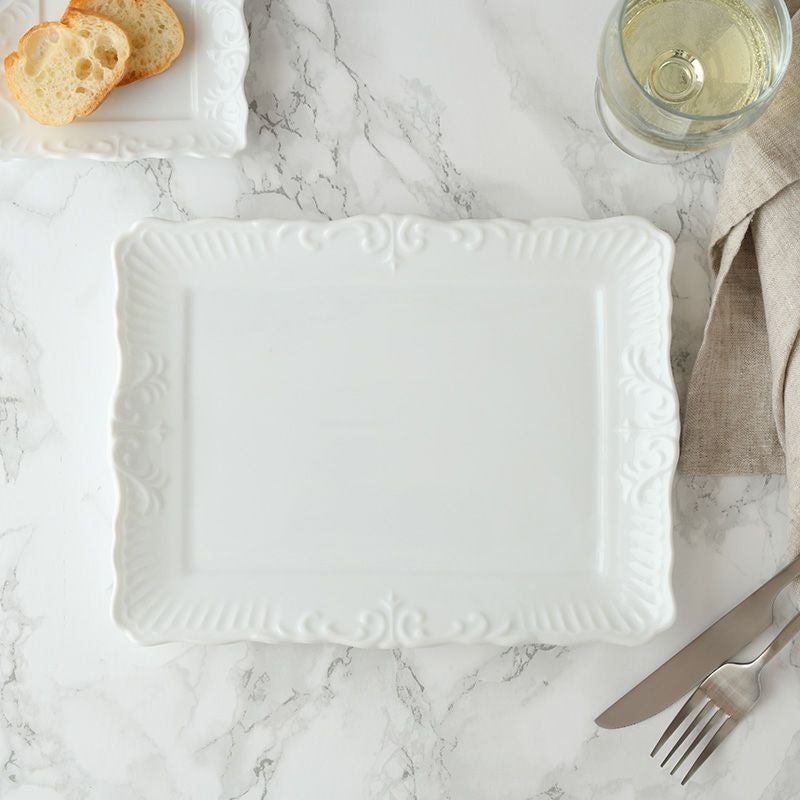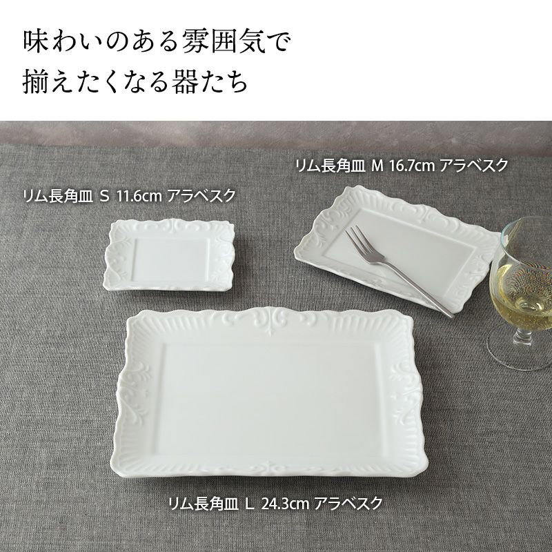 リム長角皿 L 24.3cm アラベスク ホワイト