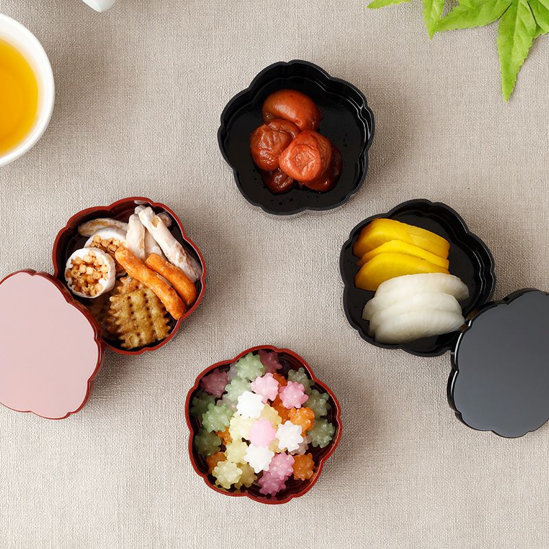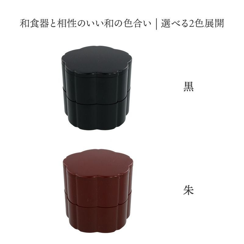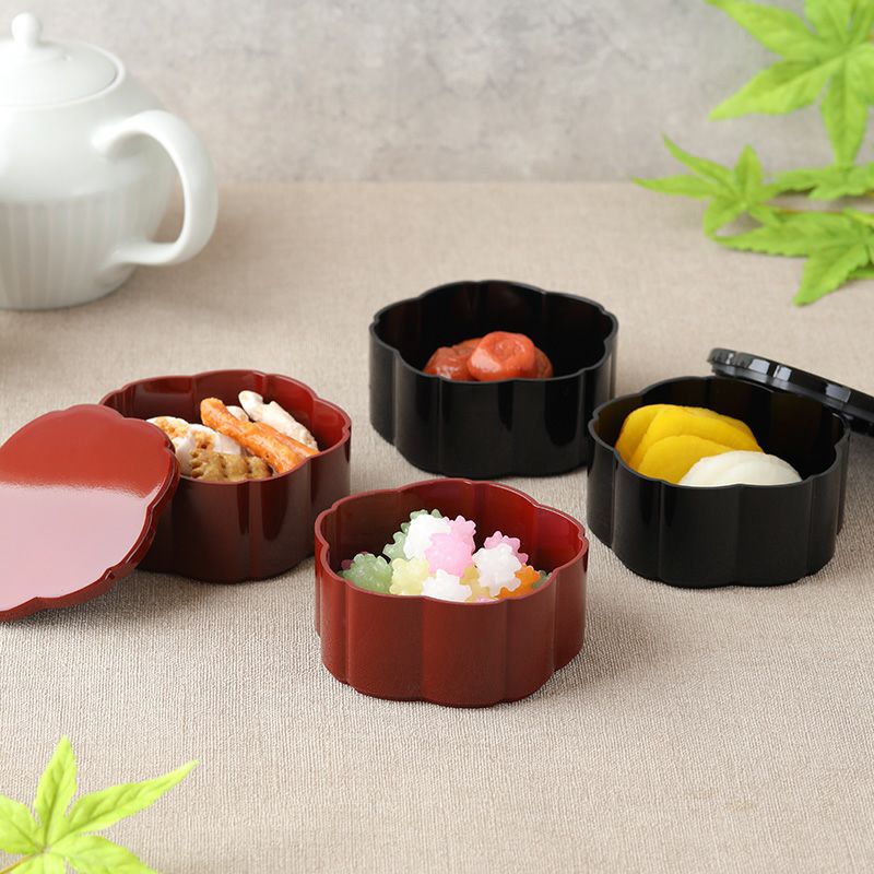 おせち料理・ホームパーティー・お祝いの席など食卓を華やかに彩る小さなお重です。 小鉢サイズで使いやすい一人分のおかずを盛りつけるのにぴったり。 樹脂製で軽く、クリーンコート加工で汚れも落ちやすく気軽に使えるおもてなし食器としておすすめです。