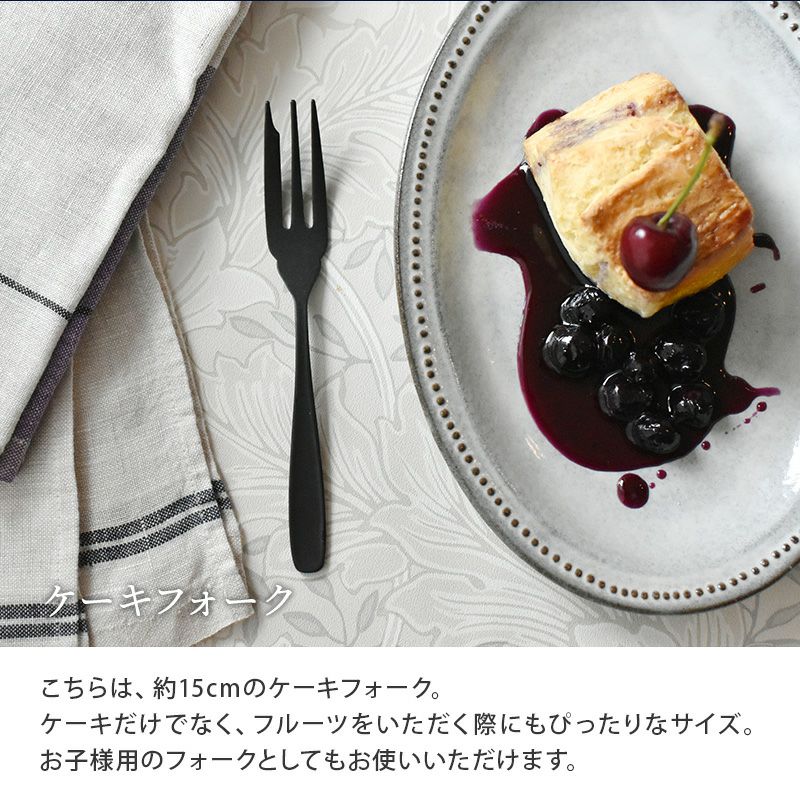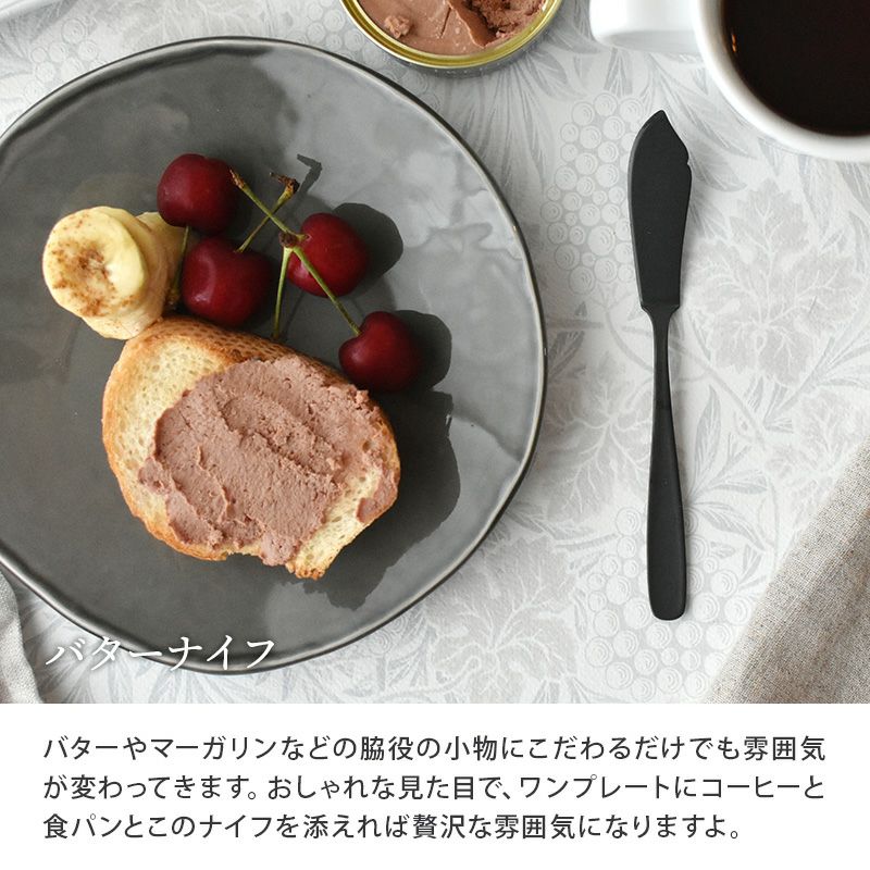 光沢のない黒マットの質感が特徴のカトラリー。すっきりとしたデザインは普段使いからおもてなしにも活用でき、食卓をおしゃれで引き締まった印象にしてくれますよ。