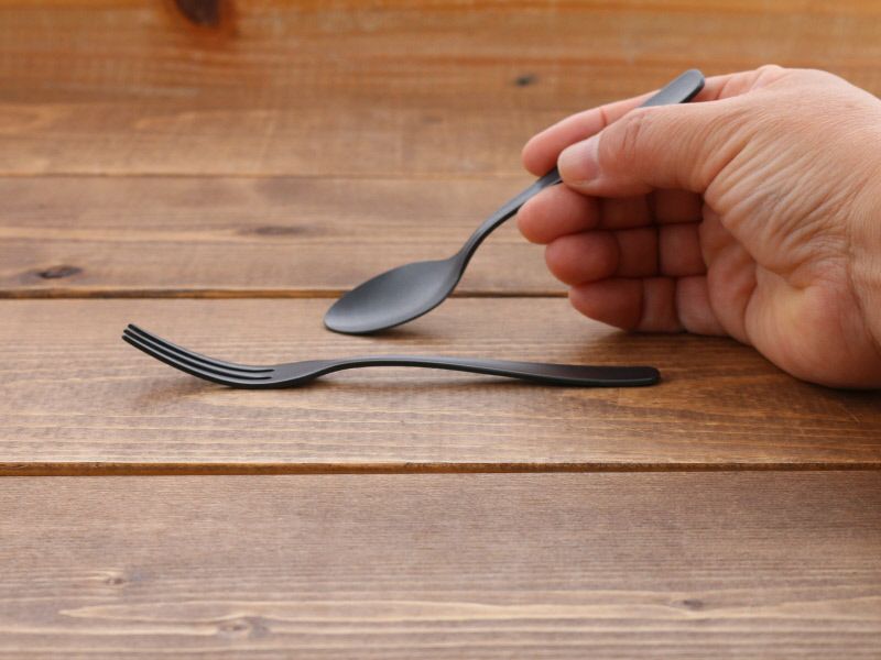 光沢のない黒マットの質感が特徴のカトラリー。すっきりとしたデザインは普段使いからおもてなしにも活用でき、食卓をおしゃれで引き締まった印象にしてくれますよ。