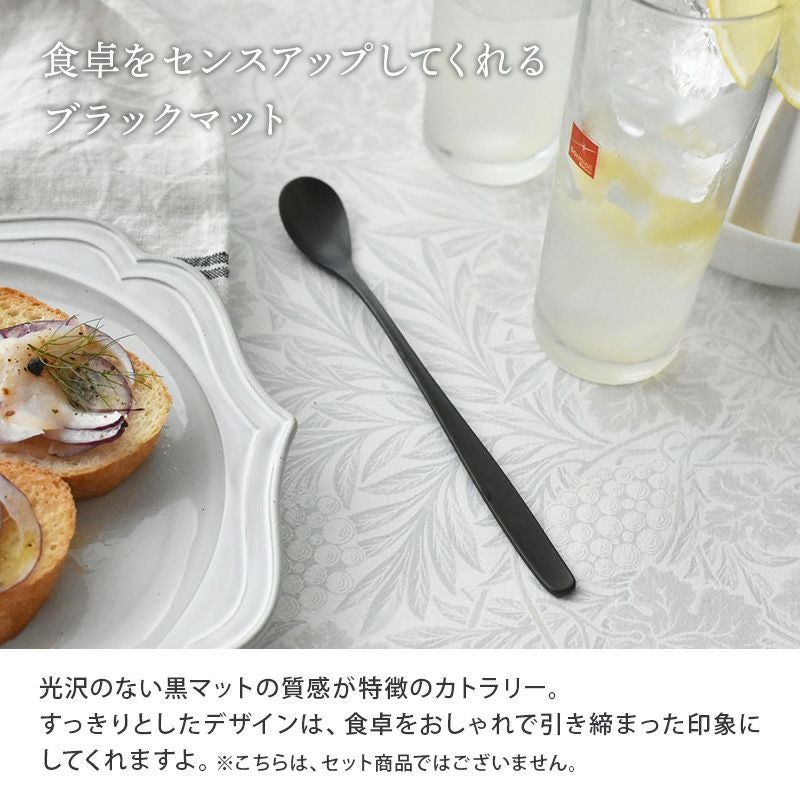光沢のない黒マットの質感が特徴のカトラリー。すっきりとしたデザインは普段使いからおもてなしにも活用でき、食卓をおしゃれで引き締まった印象にしてくれますよ。