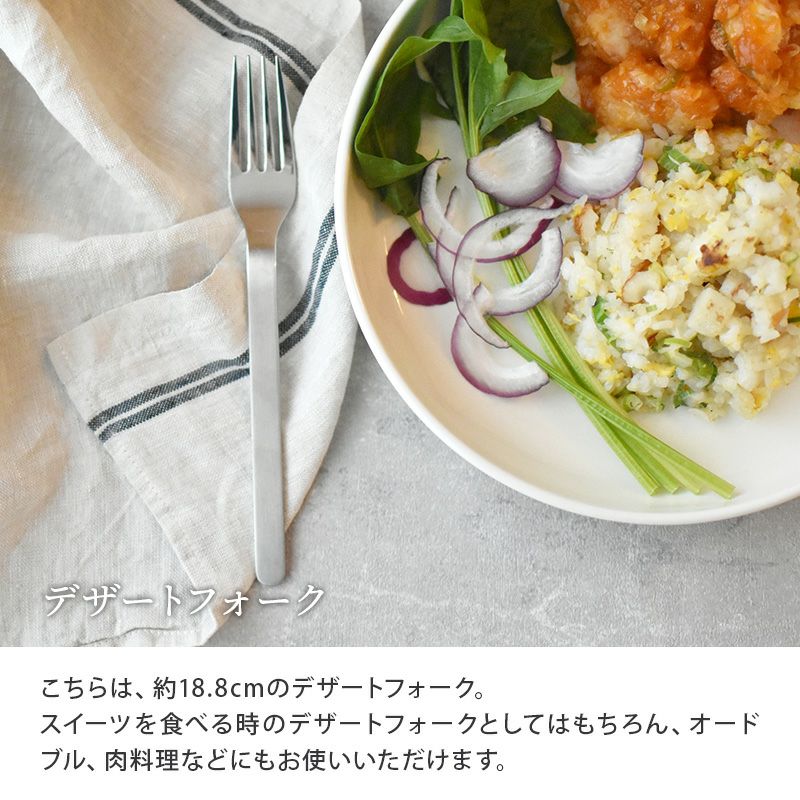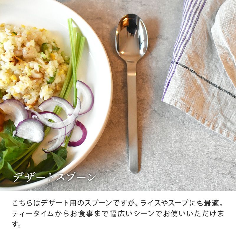 デザートフォークはオードブル、肉料理などにも、デザートスプーンはライスやスープにも最適。