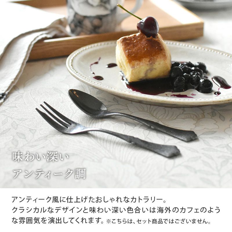 アンティーク風に仕上げたおしゃれなカトラリー。クラシカルなデザインと味わい深い色合いは海外のカフェのような雰囲気を演出してくれます。
