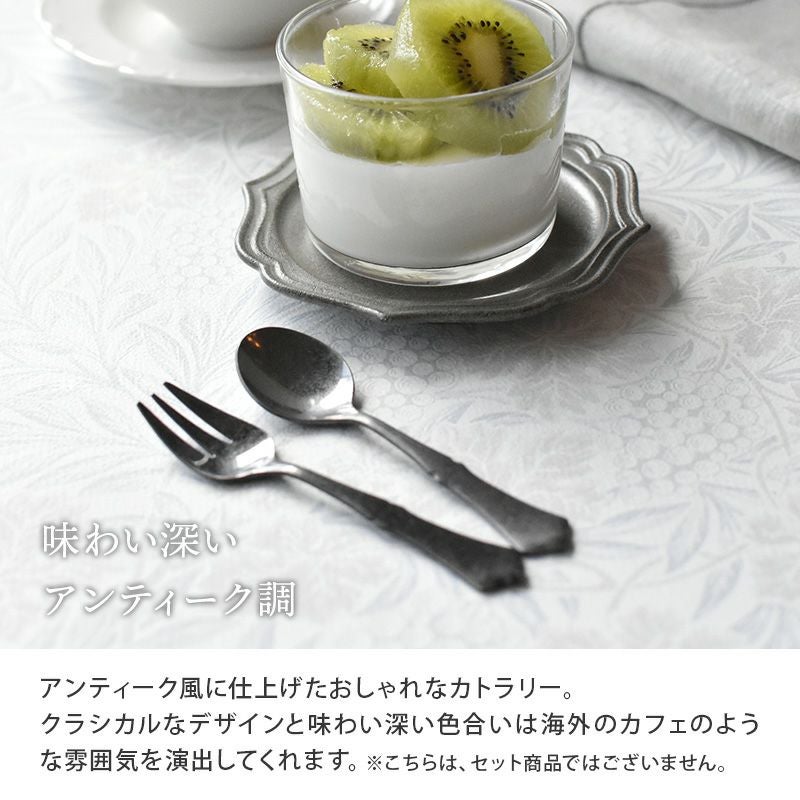 アンティーク風に仕上げたおしゃれなカトラリー。クラシカルなデザインと味わい深い色合いは海外のカフェのような雰囲気を演出してくれます。