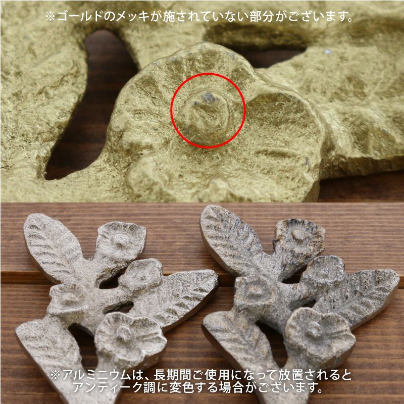 | 注意事項 | ※サイズは全て外寸になります。 ※長期間ご使用になって放置されるとアンティーク調に変色する場合がございます。 ※ご使用後は水洗いして柔らかい布で水分を吸い取ることで、製品は長持ちいたします。 ※細かい隙間に汚れのようなものが見受けられますが製造工程上の磨き残しなので問題ございません。 ※ゴールドのメッキが施されていない部分や・多少のバリが残っている場合がございます。 ※お客様のお使いのモニター設定、お部屋の照明等により実際の商品と色味が異なって見える場合がございます。 ※画像に含まれる小物はイメージのため使用しています。 |