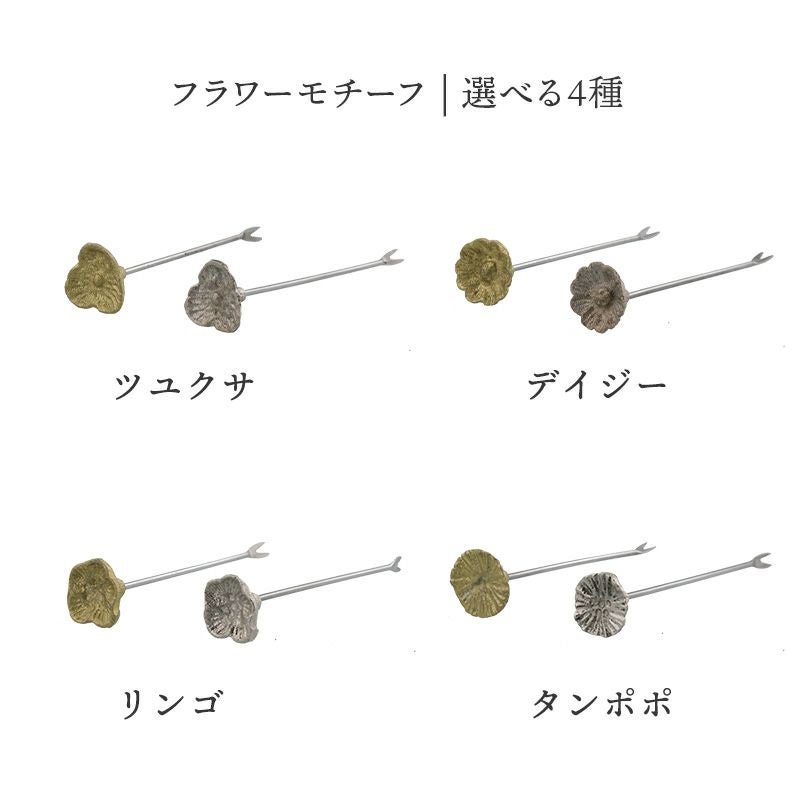 果物や前菜などちょっとしたものを食べる時、あると便利なピック。 フラワーモチーフが、いつもの食卓に添えるだけで上品でおしゃれな雰囲気を演出してくれます。 普段使いはもちろん、おもてなし用・パーティ用カトラリーにもおすすめ。